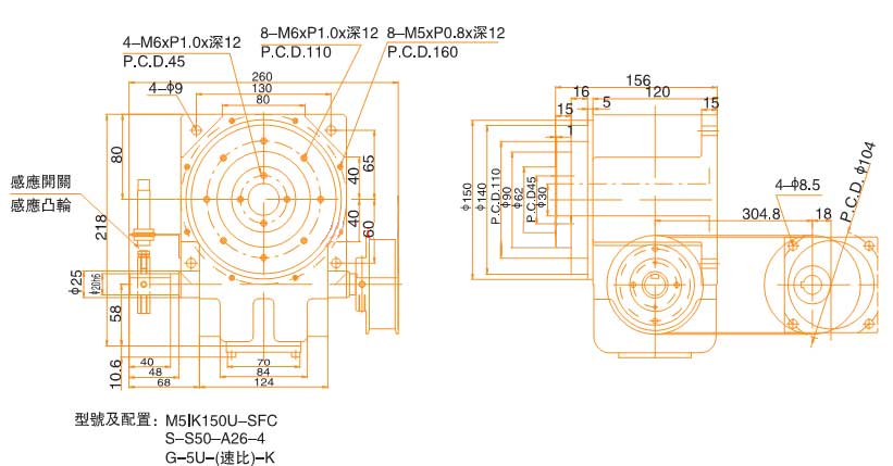 此系列机械之尺寸设计特性与凸缘型功能相似,于驱动运转上可承受超大轴向负载及垂直径向压力,在输入端有一凸起固定盘面及大孔径空心轴,可搭配设置动态,静态自动化周边设备,就将动力源之电,油气等管路置于空心孔内,此系列机械机种广泛应用于重负载,直接自动化设备之各类机械及产业机械等,作同步自动化间歇驱动. |